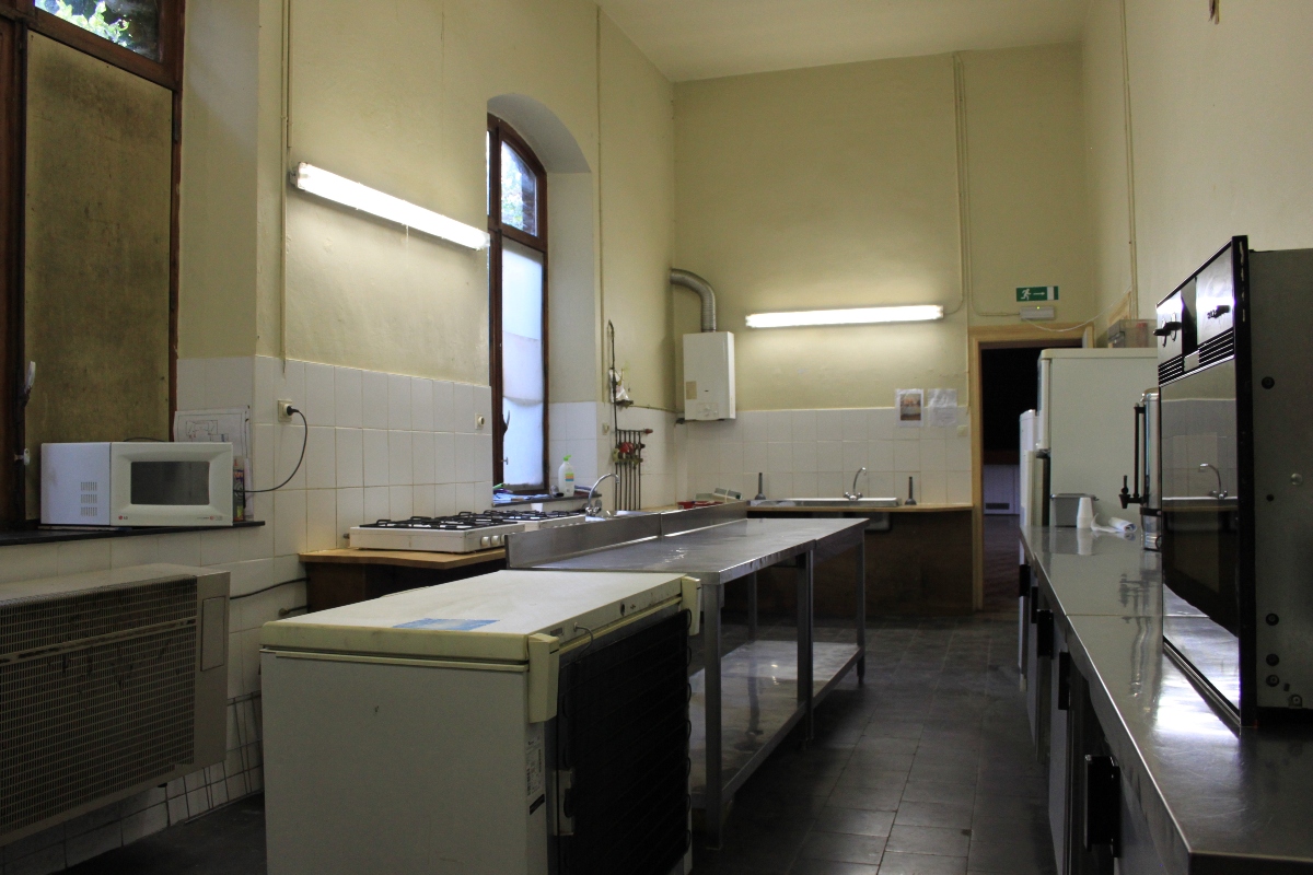 • La cuisine est équipée de frigos, congélateur, réchauds à gaz, four à micro-ondes, éviers et grandes tables.